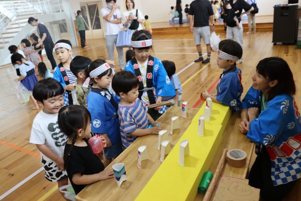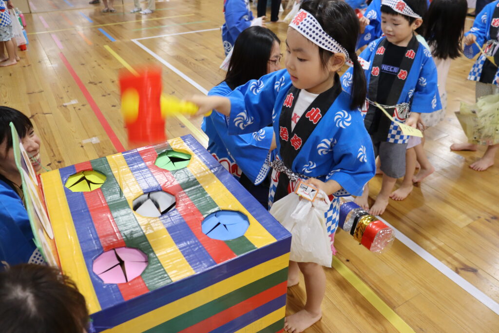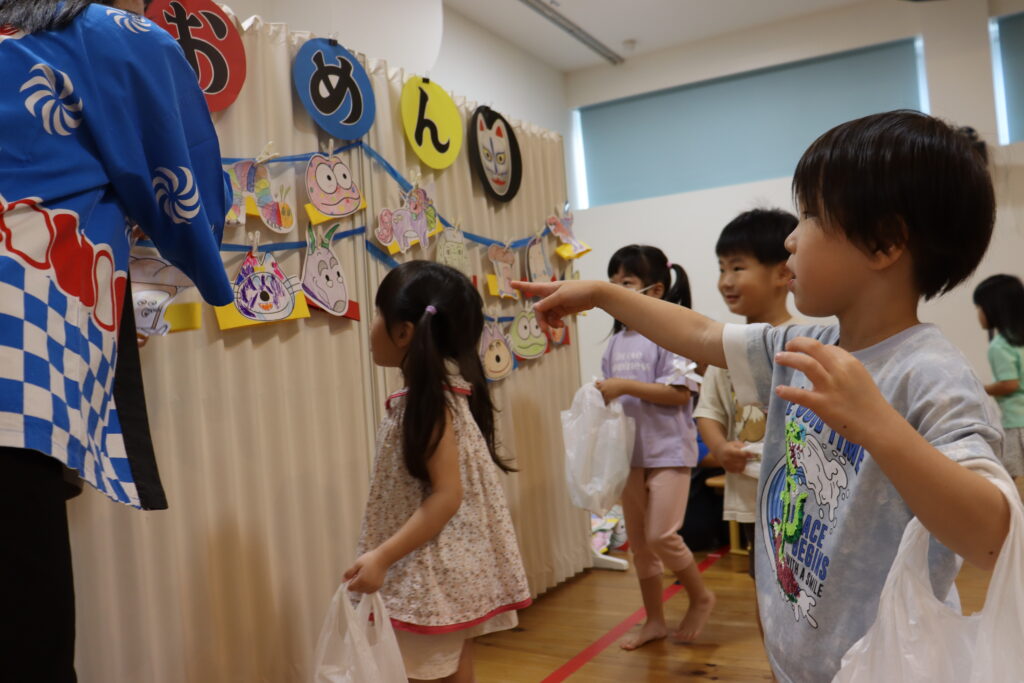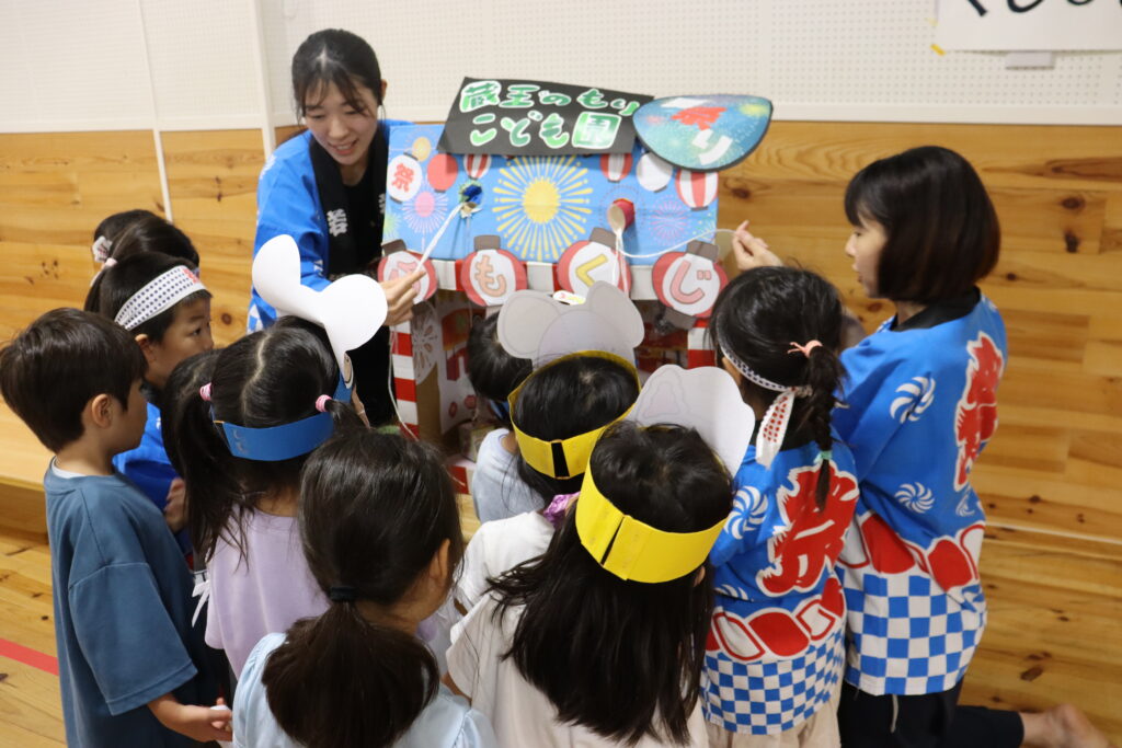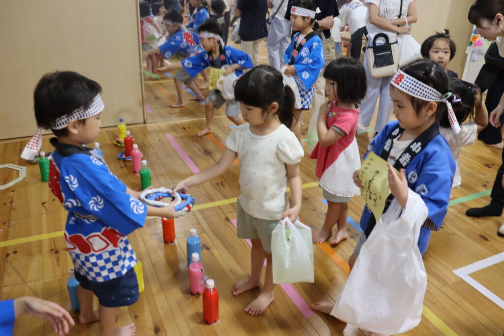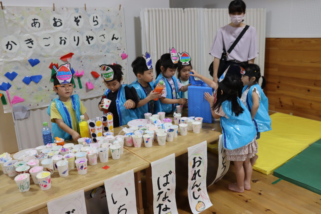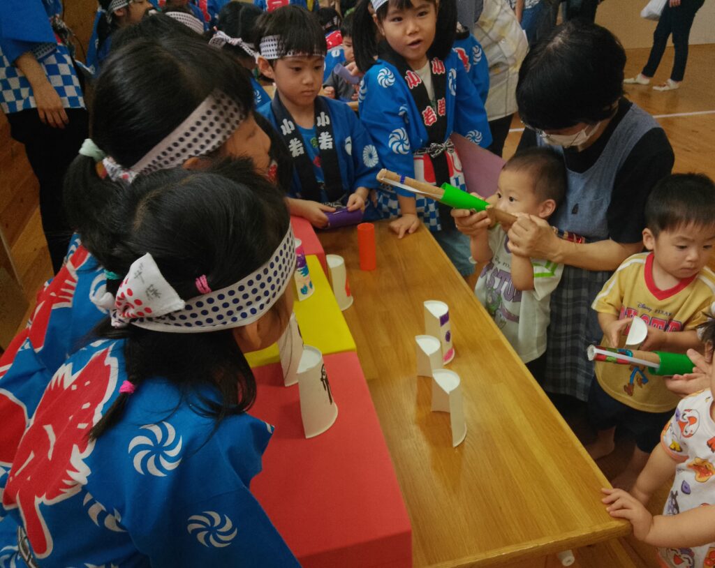 夏祭りウィークを通して、子どもたちはお店屋さんとお客さんのやりとりを楽しんだり、異年齢のかかわりの中で友だちの良さに気づき、共に育ち合う姿が見られました。