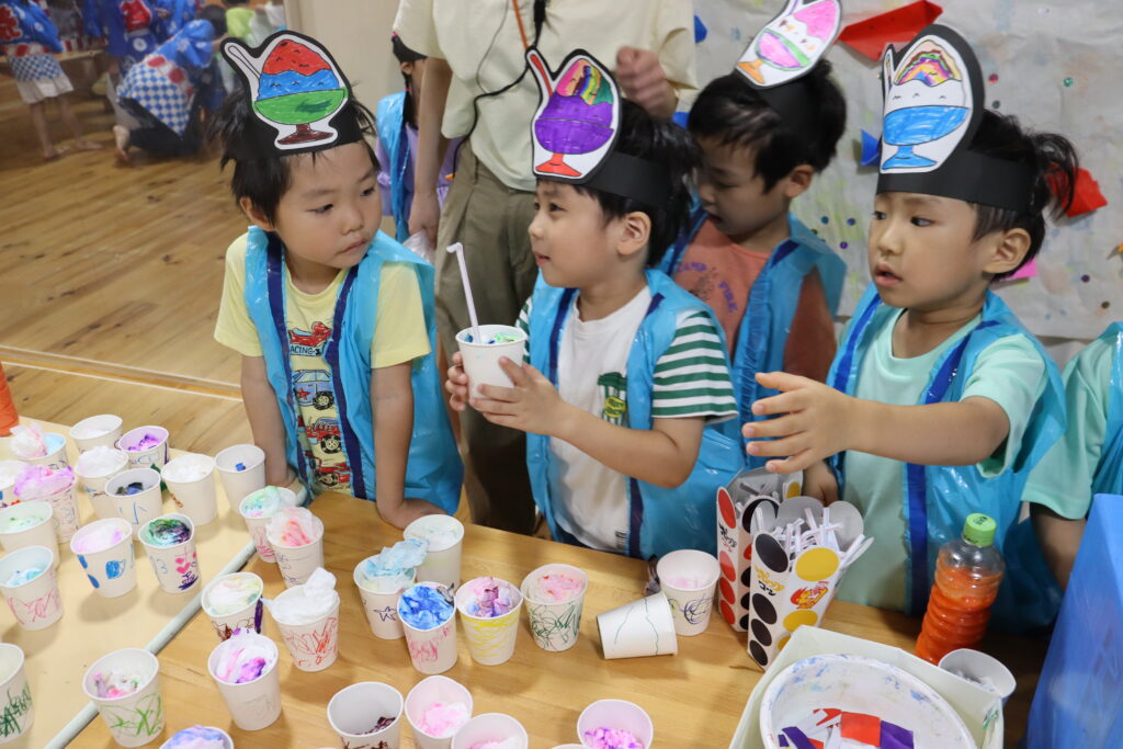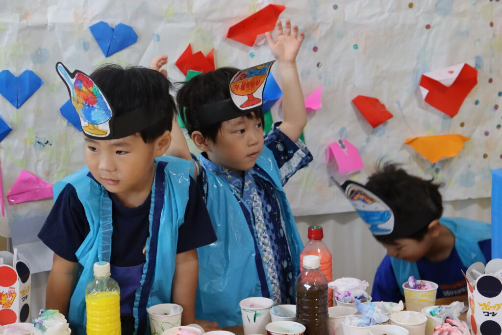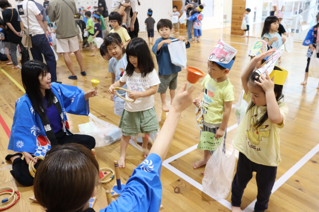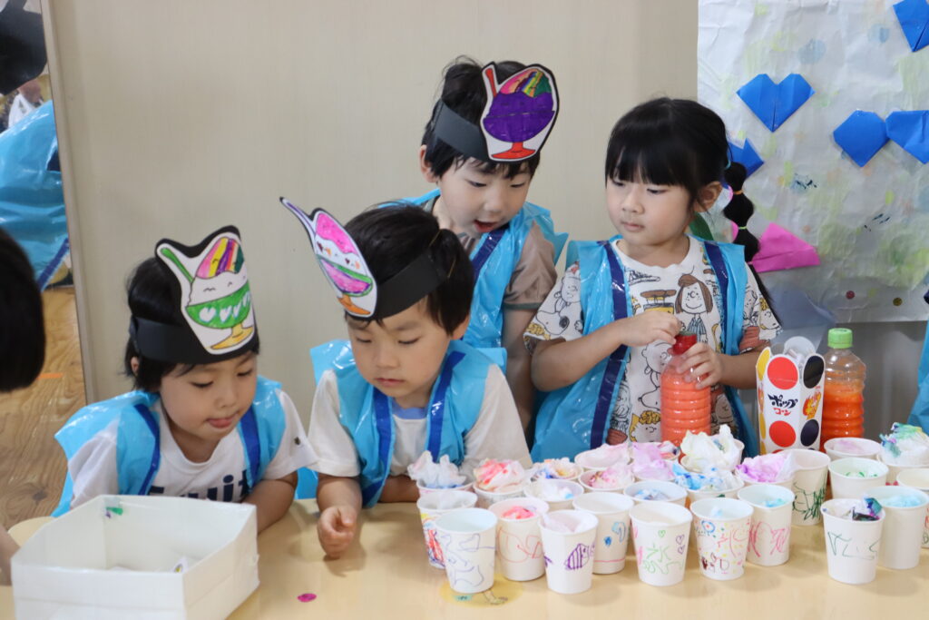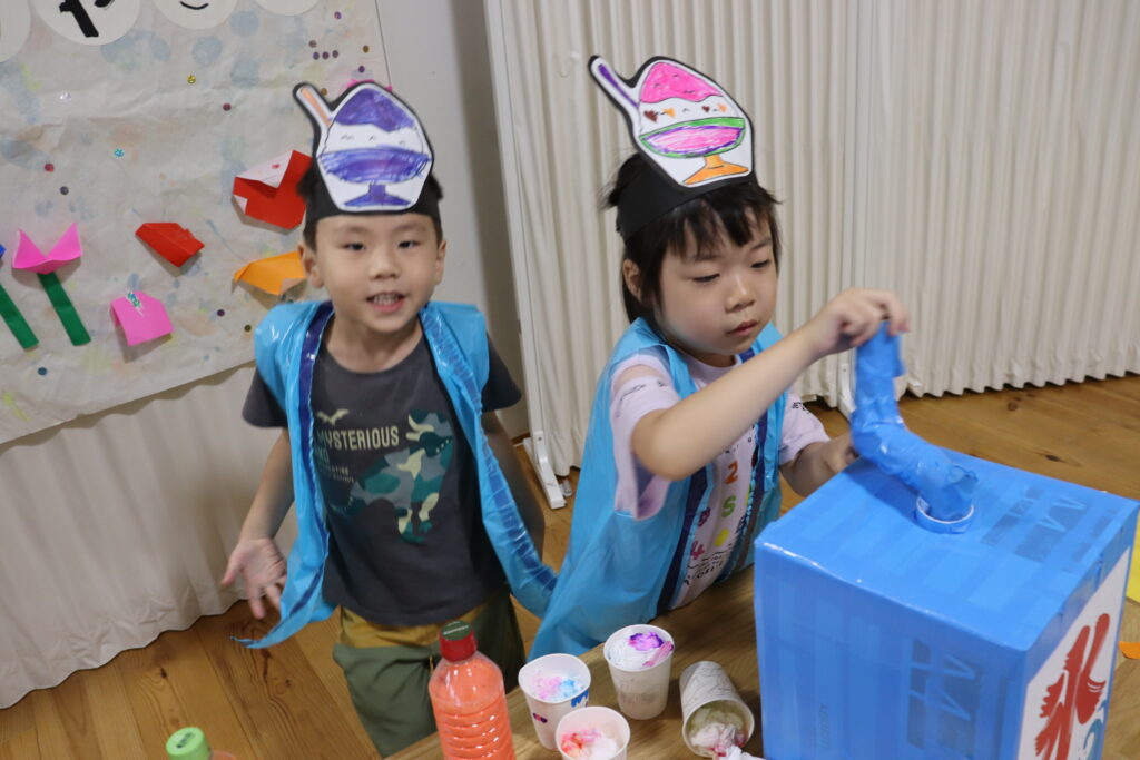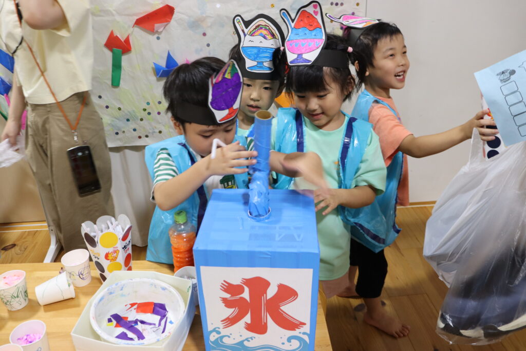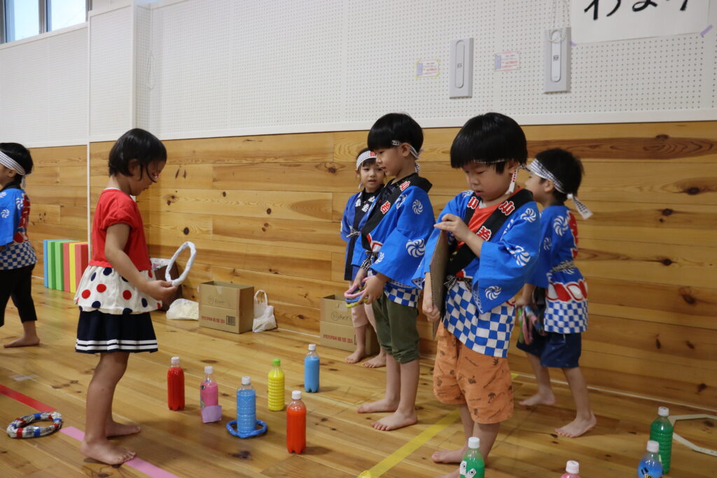 夏祭りウィークを通して、子どもたちはお店屋さんとお客さんのやりとりを楽しんだり、異年齢のかかわりの中で友だちの良さに気づき、共に育ち合う姿が見られました。