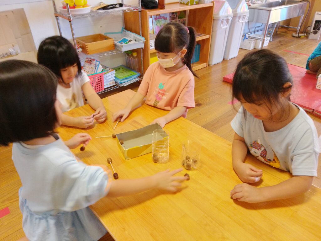 あおぞら組の様子 ~どんぐりを使った遊び~