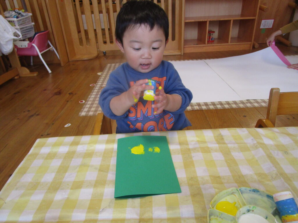 落ち葉や雪、クリスマス制作では絵の具に触れ、感触遊びも楽しみました!
