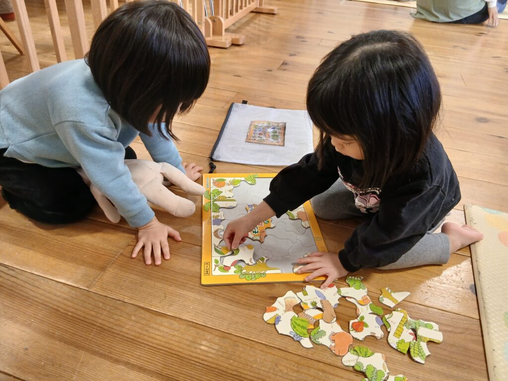 雪が降って寒さが増していますが、こもれび組の子どもたちは毎日元気いっぱい登園しています。お正月遊びや部屋での雪遊びなど冬ならではの遊びを楽しんでいます。
